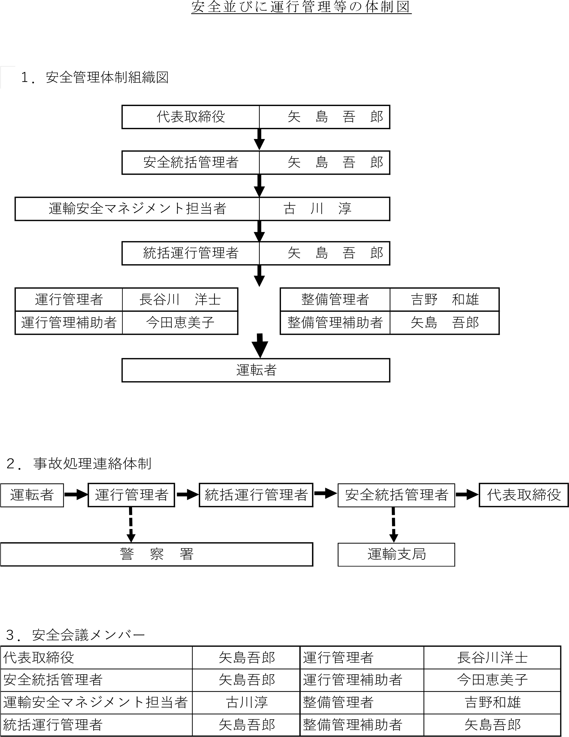 社内において安全の確保に主導的な役割を果たします。 - 2.当社は、法令を遵守し、運輸安全マネジメントの確実な実施により、